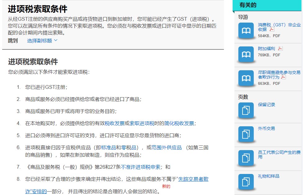 新加坡公司出口退稅需要滿足上面 鏈接中的1-4 6-8即可,5可以忽略,7是特殊產品如醫(yī)藥等如果滿足以上7點都可以申請退稅,3個月申報一次